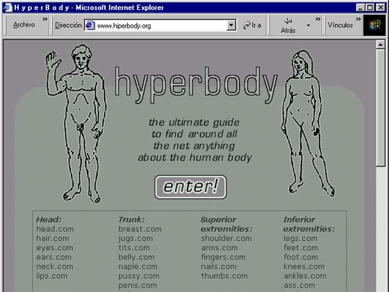 Hyperbody is an Internet portal, which offers up to the minute listings of websites whose names (URLs) refer to the different parts of the human body.